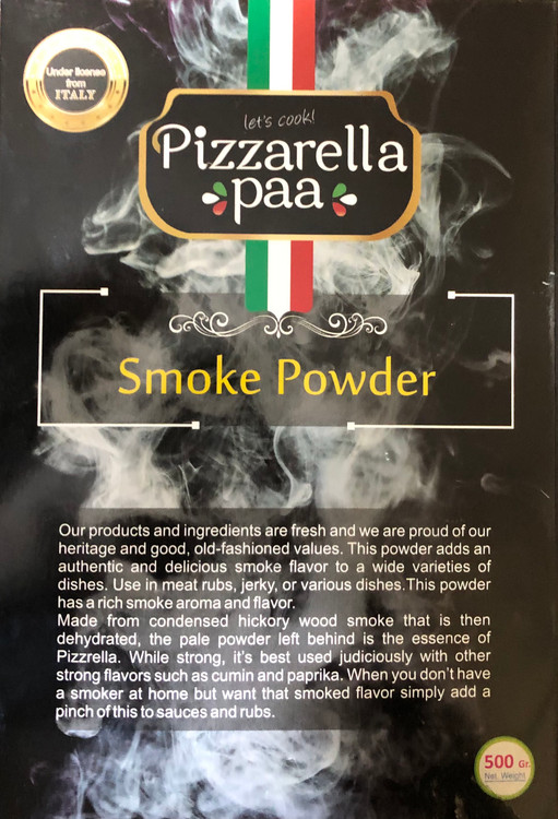 ادویه پودر دود پیزارلا پا (Pizzarella paa) 500 گرمی پا یکی از ادویههای محبوب در صنعت غذا است که برای اضافه کردن طعم دود و عطر خوشبوی چوب به غذاها استفاده میشود. این ادویه پودر دودی دارای اسانس دود و طعم دهنده دود فرانسوی است. این ادویه دارای خاصیت مقاومت در برابر حرارت است. پس میتوان آن را در تهیه غذاها و فراوردههای گوشتی با اطمینان بالا استفاده کرد.