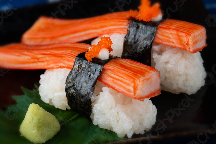 کرب استیک به عنوان یک ماده مهم واساسی و جایگزین گوشتخرچنگ در تهیه برخی از انواع سوشی مصرف میشود که به طعم و ظاهر زیبای این غذای ژاپنی کمک کند.
