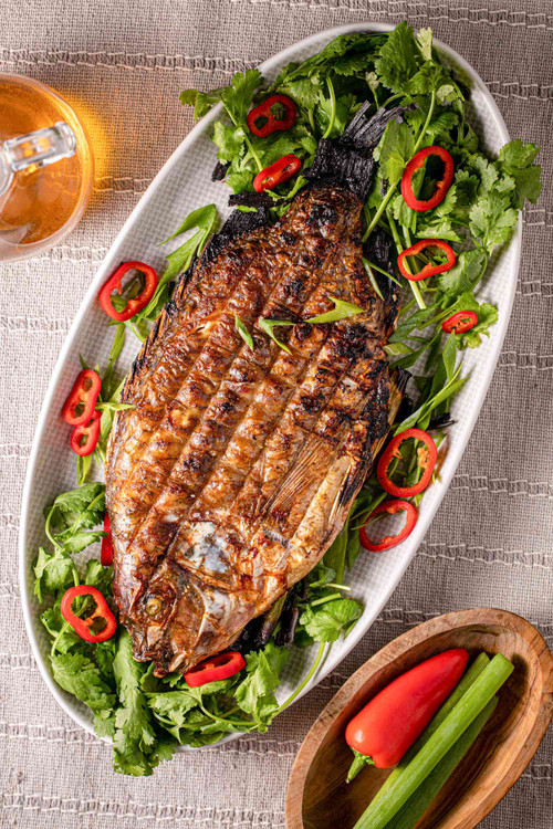 براي هر كيلو ماهي ٢٠ گرم ادويه همراه روغن زيتون استفاده ميشود تا طعمي فوق العاده خوشمزه به ماهي بدهدو حداقل اين مخلوط ادويه گريل ماهي و روغن زيتون همراه ماهي بايد ١ الي ٣ ساعت داخل يخچال استراحت كند